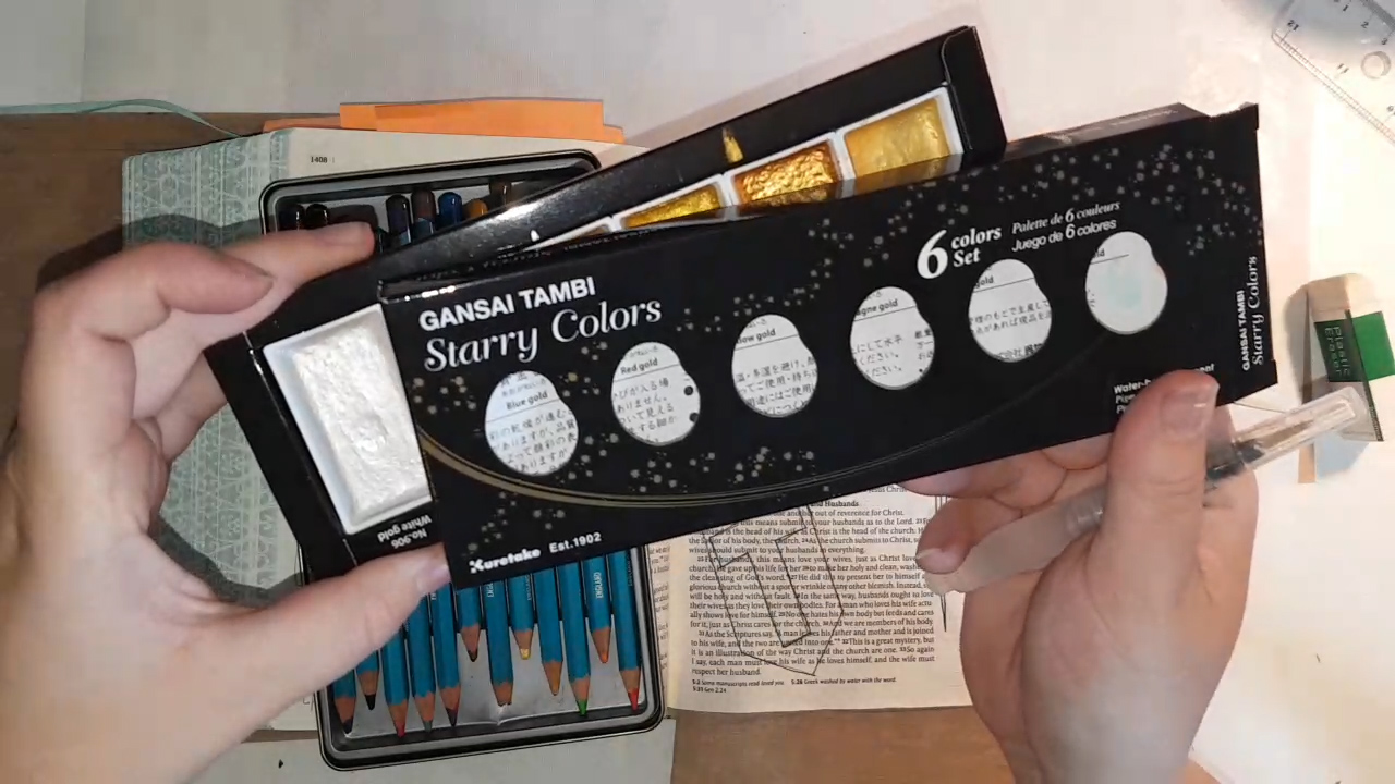 Vi använder vattenlösliga färgpennor, Gansai Tambi Starry Colors och Micronpennor.