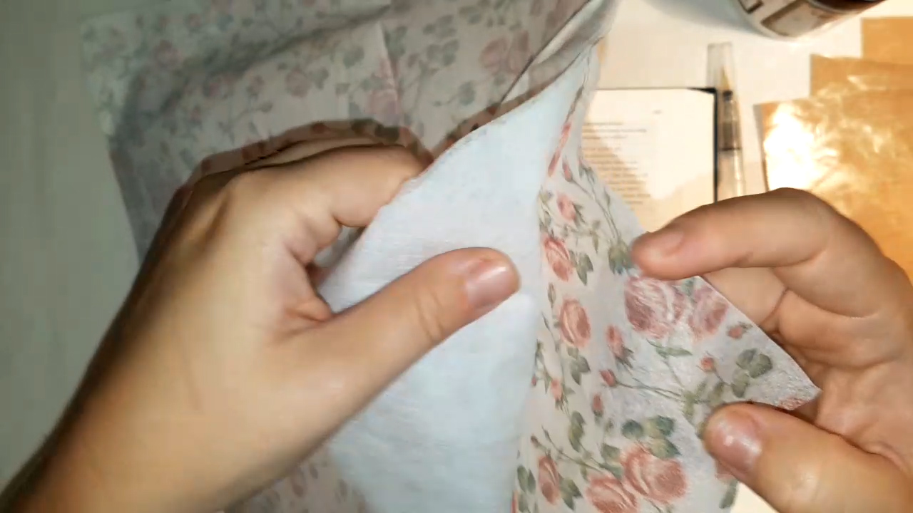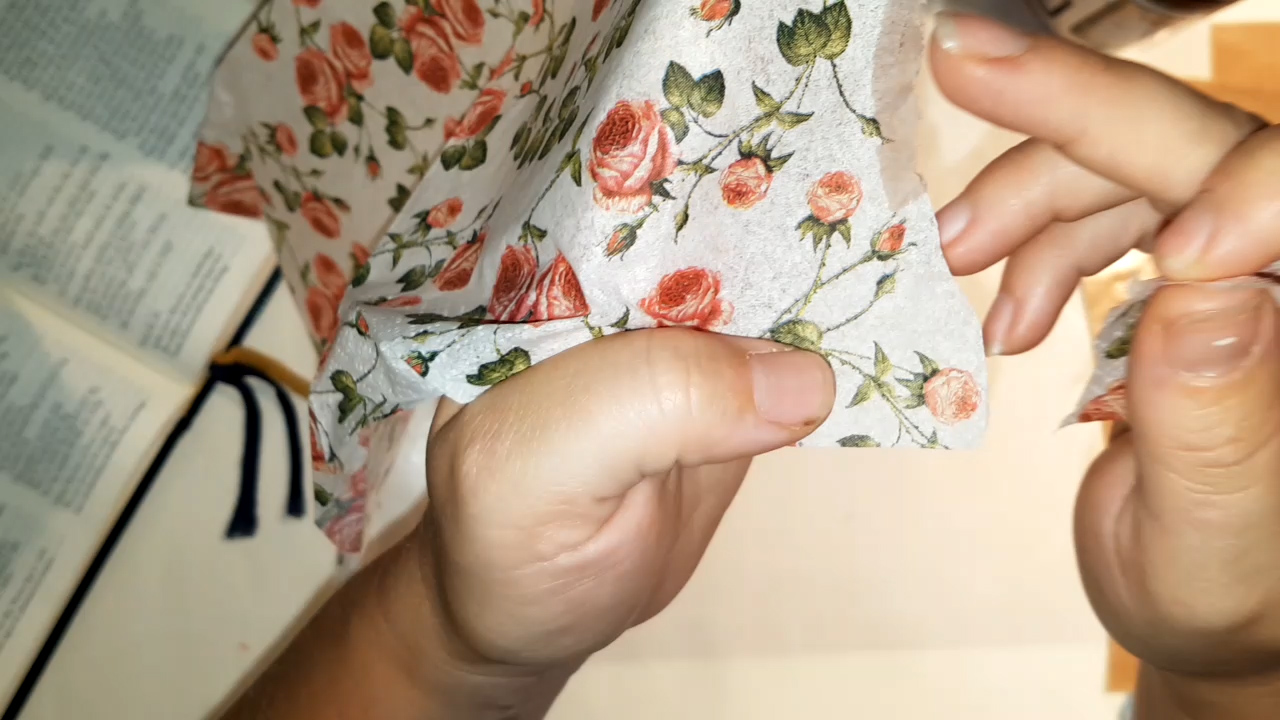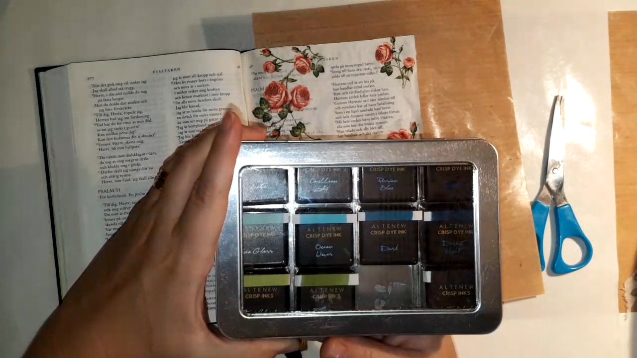 Det underlättar en hel del om du väljer en servett med ljus bakgrund, så smälter motivet in i bakgrunden mycket bättre, och det är större chans att du ser texten genom servetten. Men tekniken fungerar såklart med vilken servett (eller decopagepapper) som helst.