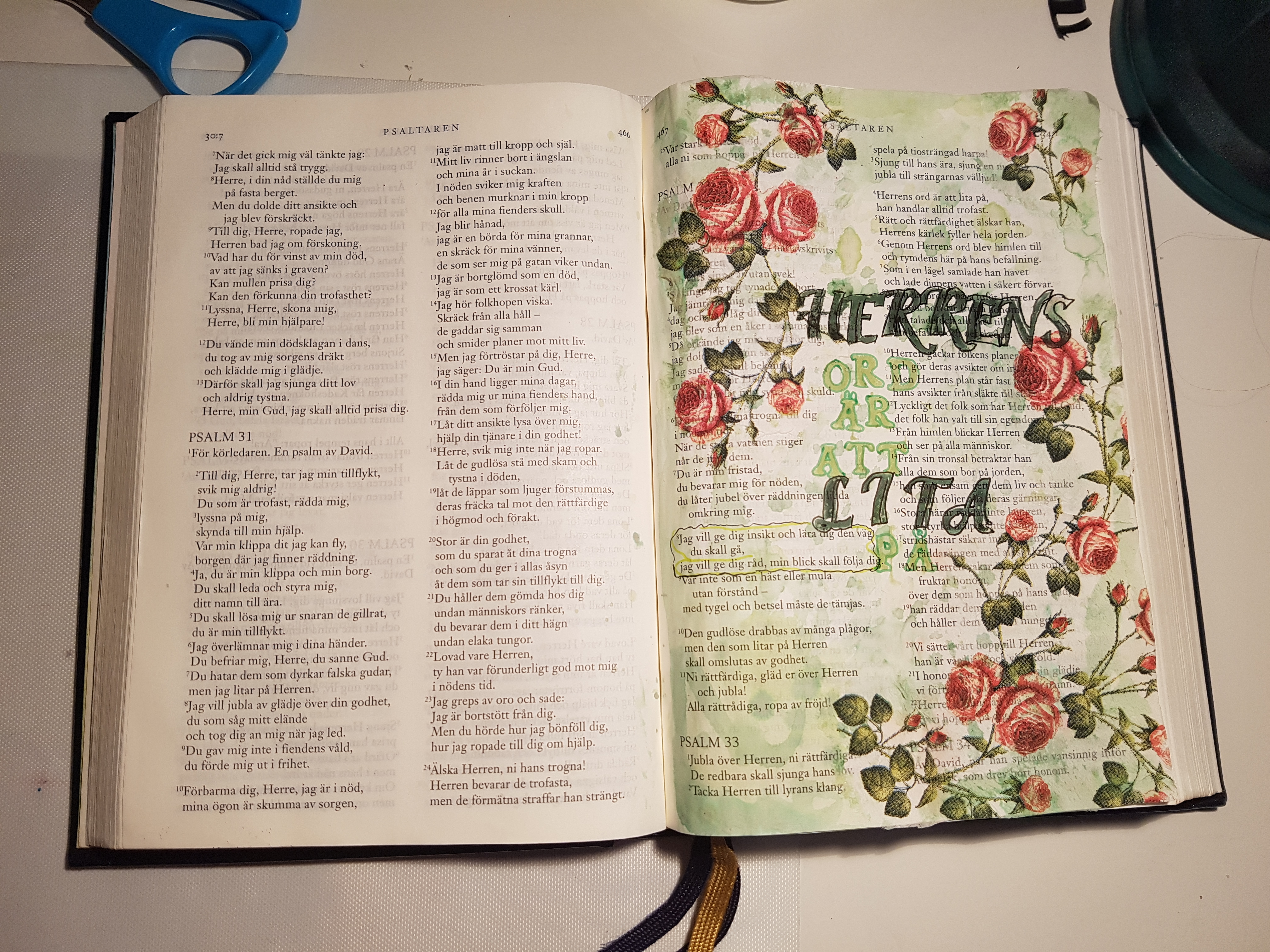 Nu ska jag stämpla första delen av mitt utvalda bibelord mitt på sidan.
